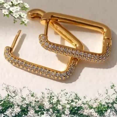 Add a touch of luxury to your look with these elegant geometric earrings. Crafted in a sleek gold-tone finish and adorned with sparkling zircon stones, these earrings perfectly blend modern design with timeless shine. Lightweight, stylish, and comfortable — ideal for both daily wear and special occasions.